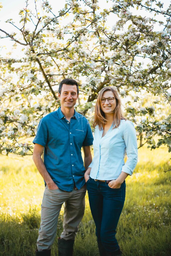 L’histoire des Vergers de Kermabo débute en 1985, lorsque Anne et Eugène Le Guerroué reprennent la ferme familiale en Bretagne et fondent leur cidrerie. Les premières cuvées proviennent du verger du père d’Eugène, puis un nouveau verger est planté dès la première année. Alliant tradition et savoir-faire, le domaine a su évoluer tout en préservant les méthodes anciennes. Aujourd’hui, il valorise une agriculture durable et transmet un patrimoine fruitier vivant.
